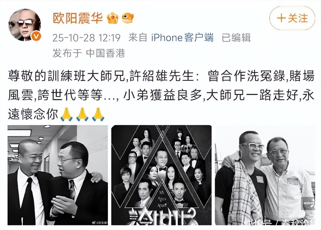 欧阳震华沉痛送别:“大师兄一路走好,小弟受教良多,此生铭记。”