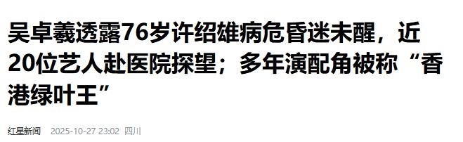 娱乐圈传来令人悲痛的消息,香港资深演员许绍雄在病情突发后不到24小时内,于10月28日凌晨不幸离世,终年76岁。