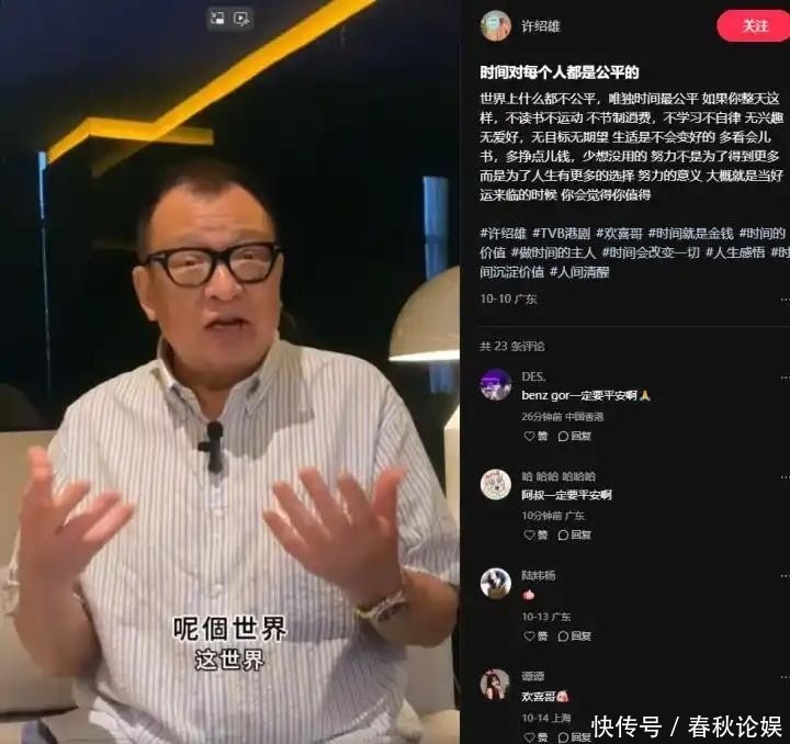 就在10月10日,许绍雄还在社交平台更新视频,与粉丝互动频繁,画面中的他神采奕奕,谈笑风生,毫无病容迹象。